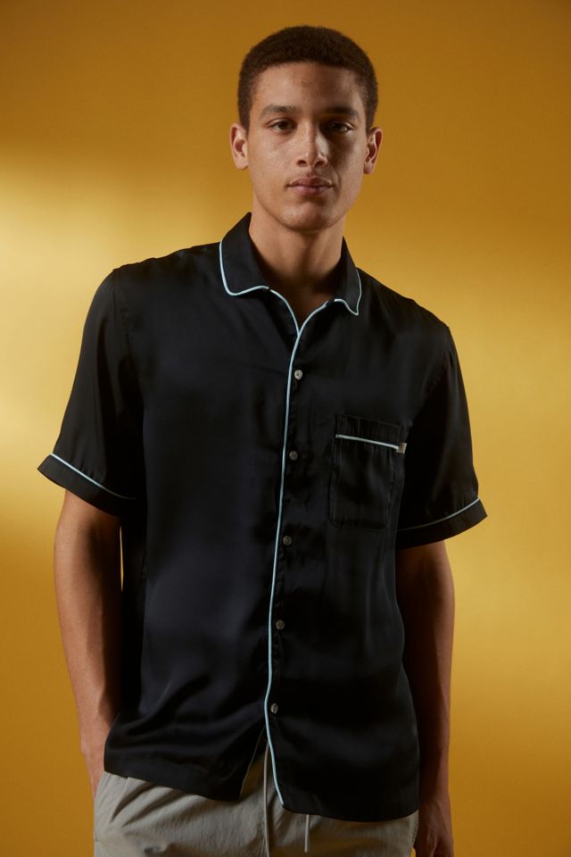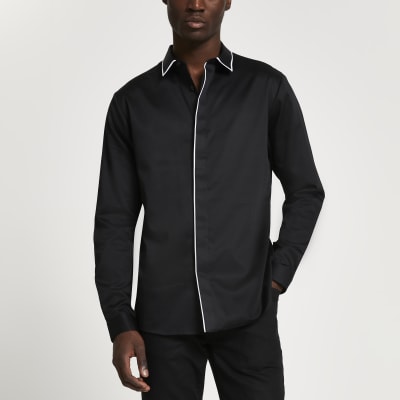 Amazoncouk DR Fashion Mens Piping Shirt with Short Sleev and Grandad Collar Black 19953286. We11done Brown Yoke Piping Detail Shirt 205 570.